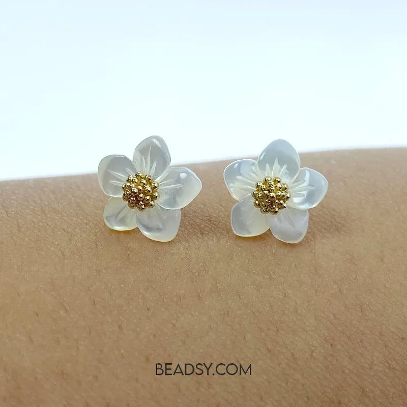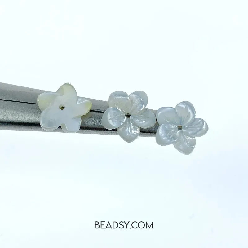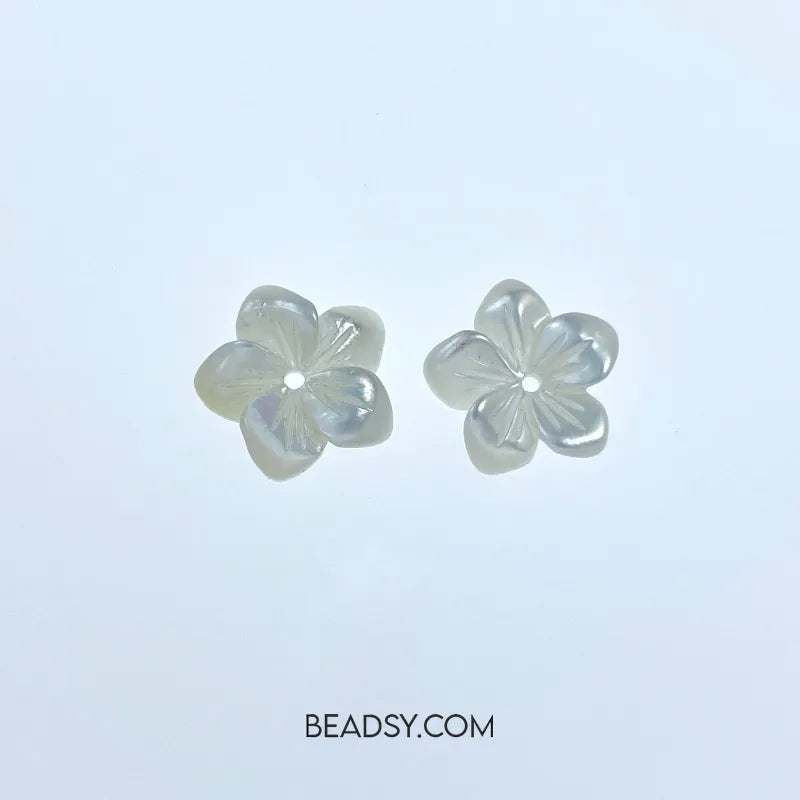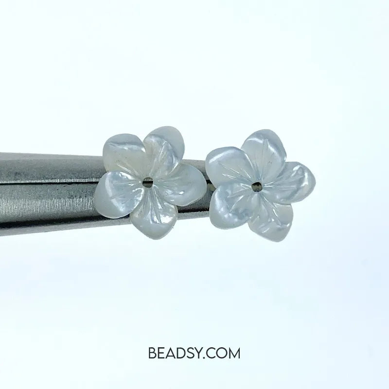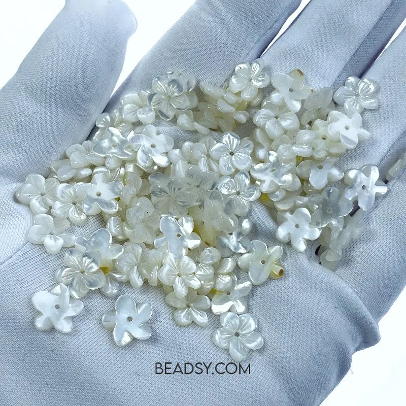 10pc Floral Beads White Mother Of Pearl 10mm Hand Carved For Bridal Jewelry Making WM-0039