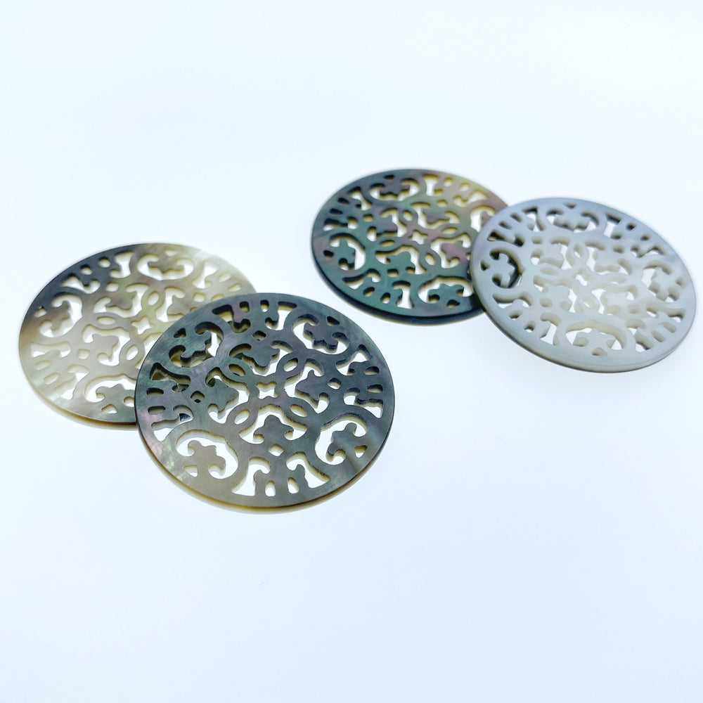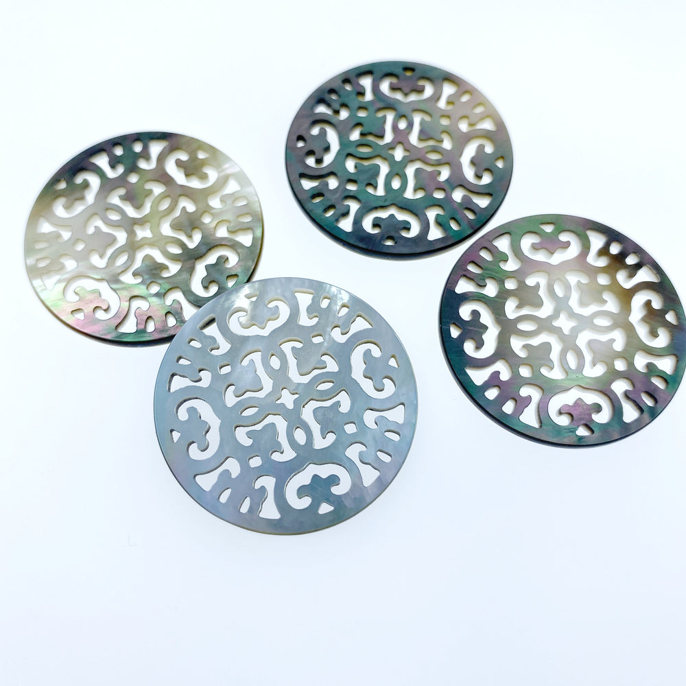 2pc Filigree Round Beads Black Mother Of Pearl Pendant Charms BM-0052