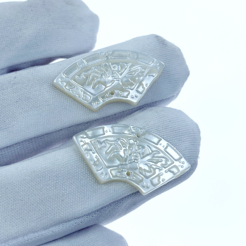 2pc Fan Shaped Hand Carved Mother Of Pearl Beads 24mm Organic Connectors For Jewelry Making Natural White Shell Pendants WM-0101