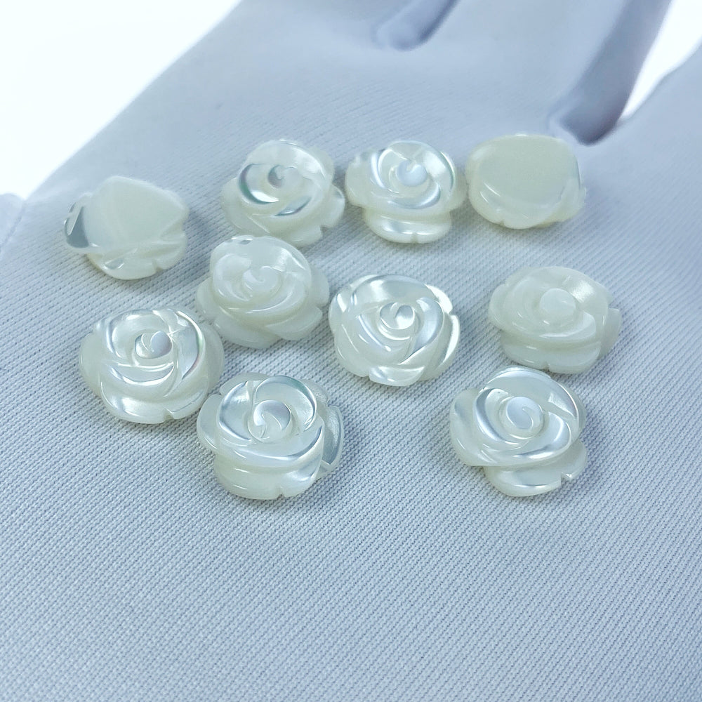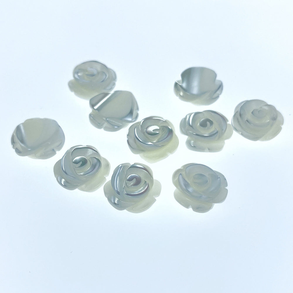 10pc Rose Flower Beads White Mother Of Pearl 10mm Hand Carved WM-0013