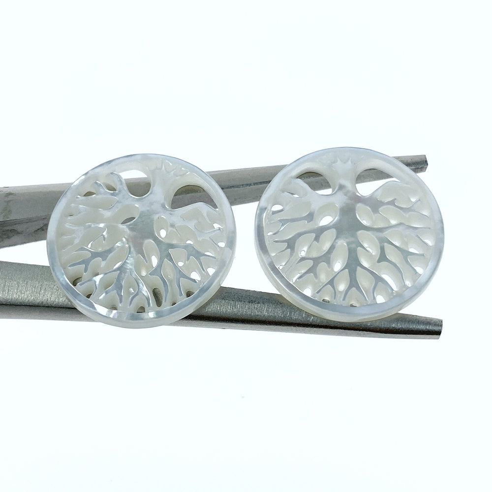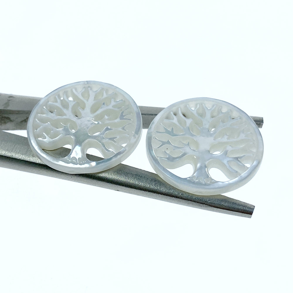 2pc Tree Of Life Beads White Mother of Pearl Pendants WM-0072